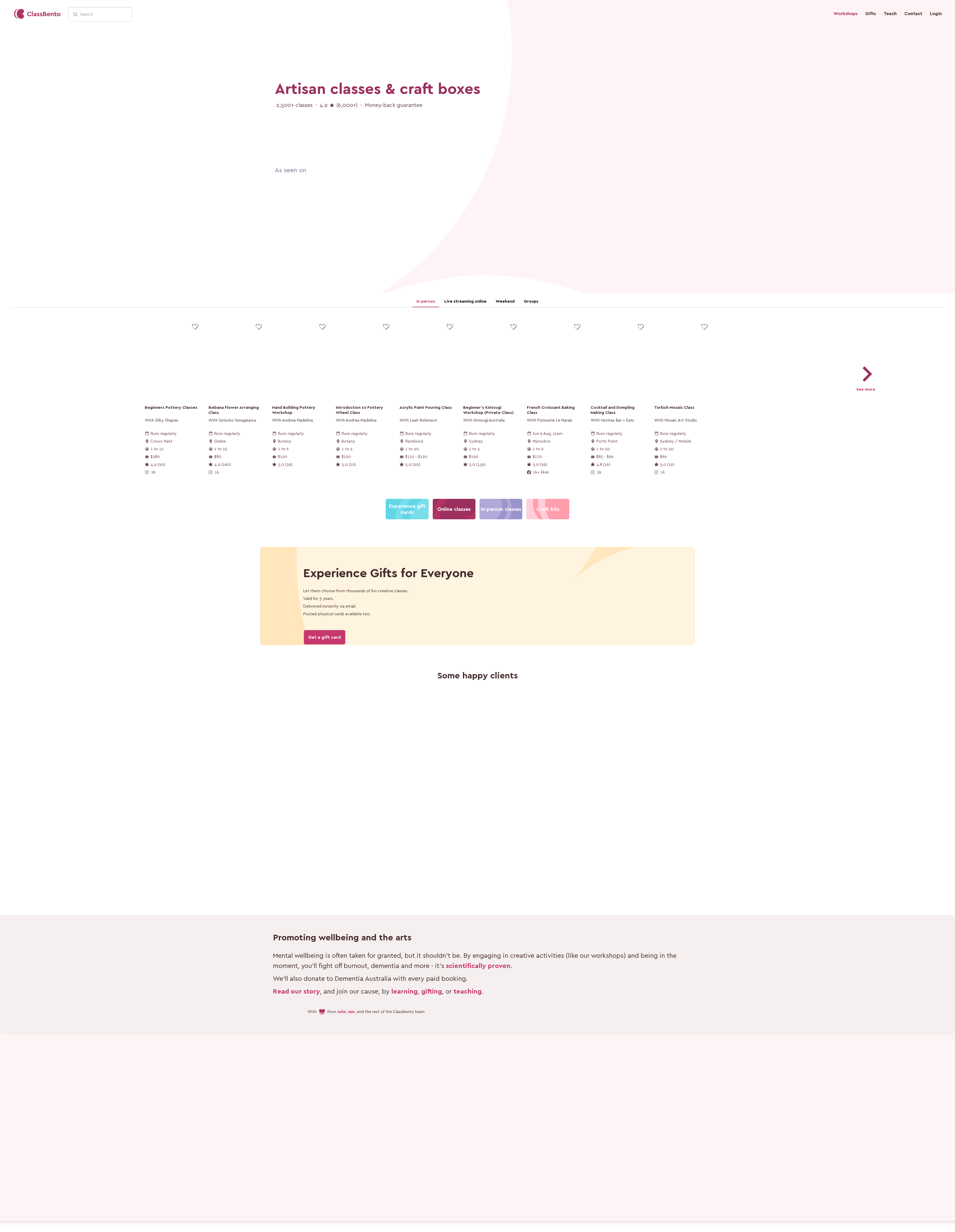 Community Marketplace for fun workshopsClassbento