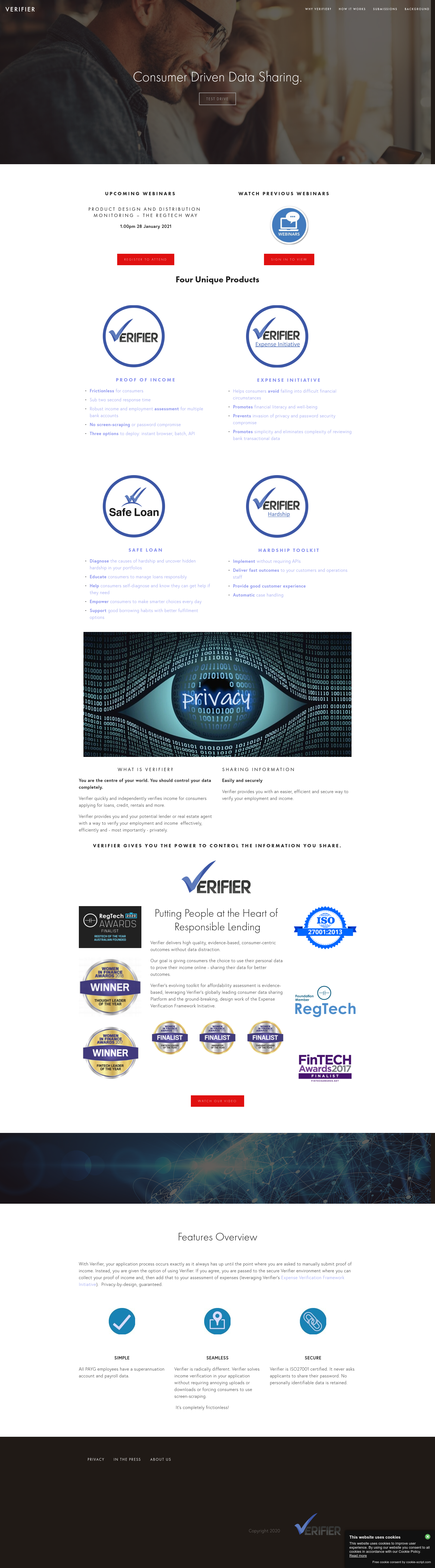 Verifier is the new multi-source standard in online income verification. Verifier gives consumers the option to use their employer’s superannuation guarantee contributions or their pay records to prove their income online. And Verifier operates in a way which respects everyone's information security needs. Verifier solves all the issues around income verification, elegantly and sustainably.