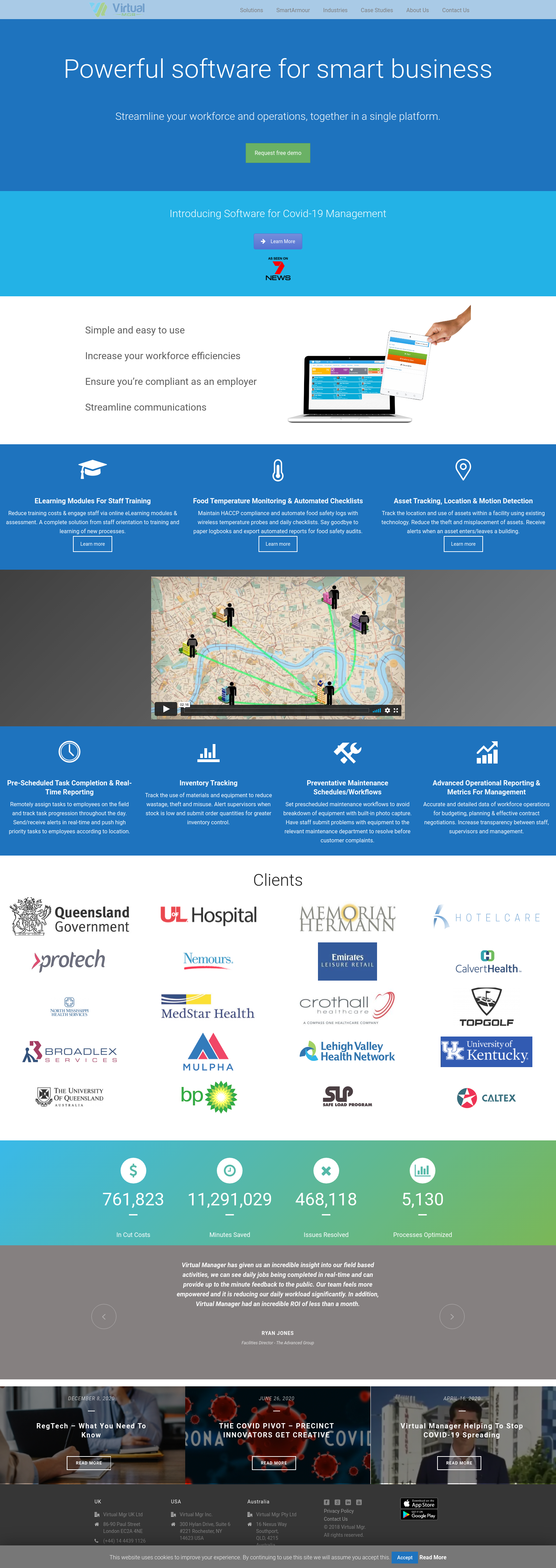 Keeping workplaces safe, clean and productive via a set of software applications for any industry - USA, UK, Australia.Virtual Mgr